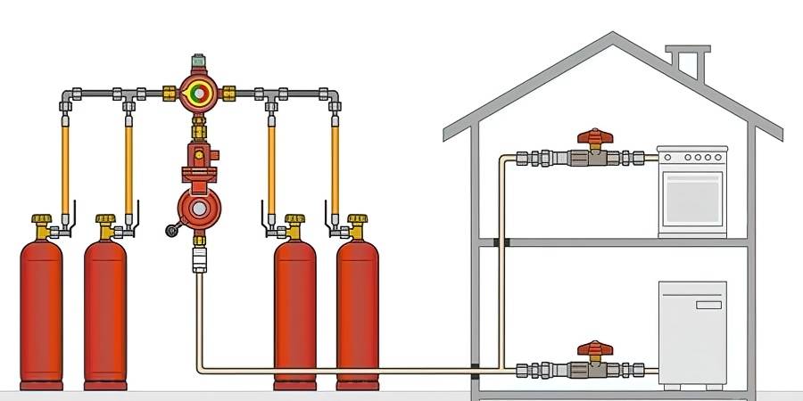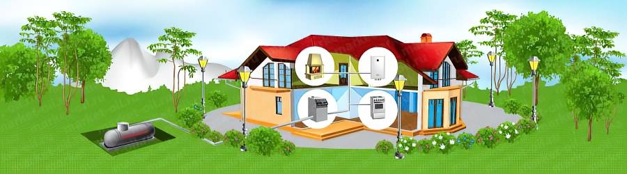 В странах Западной Европы газгольдерные системы используются довольно широко, у нас сервис доставки сжиженного газа развит недостаточно и не везде доступен. Для небольших домов можно использовать группы стандартных баллонов со сжиженным газом. Правда, ёмкость их слишком мала для того, чтобы длительное время обеспечивать работу котла, частая замена с учётом транспортных расходов может сделать эксплуатацию системы на баллонах дороже отопления дизельным топливом. Для небольшой дачи можно порекомендовать использование баллонного газа с конвектором. Но только при строгом соблюдении мер противопожарной безопасности!