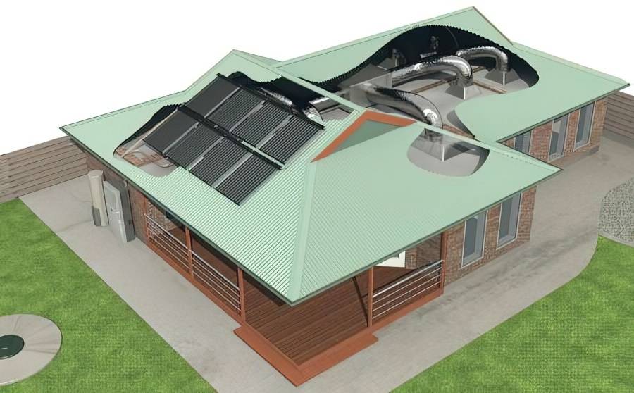 Систему обогрева такого типа можно организовать своими руками только на этапе строительства частного дома. Ее действие основано на свойствах воздуха опускаться или подниматься в зависимости от температуры нагрева. Процесс выглядит так: