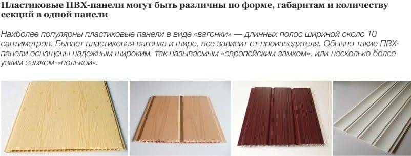 Итак, вы знаете, что это за материал, теперь необходимо выбрать панели ПВХ и закупить их. Для начала следует определиться с размерами. На данный момент в строительных магазинах можно увидеть пластиковые панели либо в виде вагонки, либо в виде прямоугольных плит с размерами, приведенными в таблице ниже.
