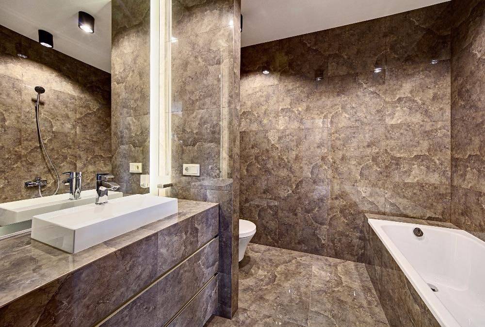 Плитка в данном помещении, независимо от облицовываемой поверхности, должна обладать наивысшим классом влагопоглощения — до 3%. При этом предпочтения по стилю оформления ванной комнаты не должно идти в ущерб прочностным характеристикам выбранного материала.