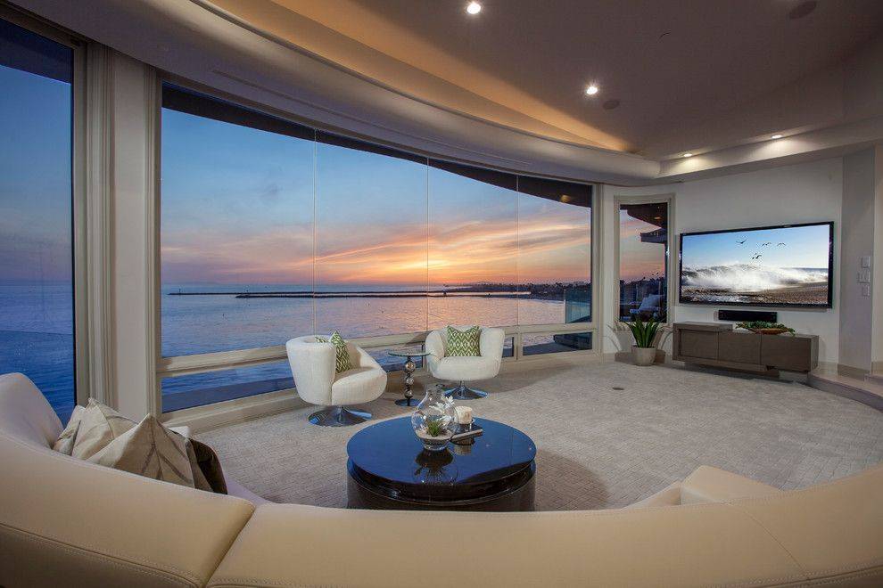 В зависимости от стилевого решения помещения, панорамное остекление представляет дизайнерам огромные возможности для оригинального оформления.