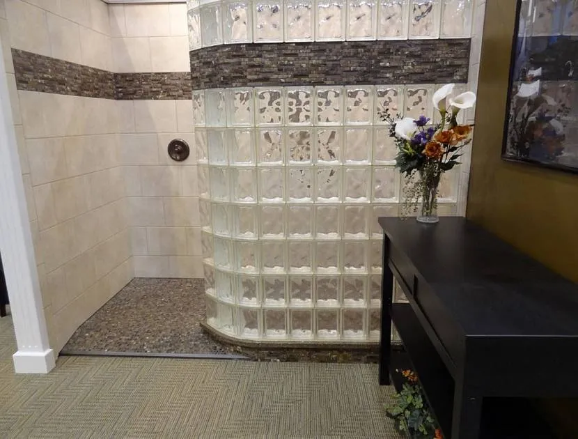 Стеклоблоки между ванной и душемИсточник remontbp.com