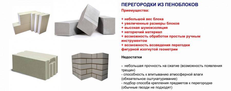 Чтобы провести сравнительный анализ перегородок, выполненных из разного материала, можно обратиться к приведенной таблице.