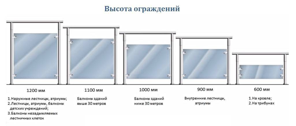 Высота ограждения должна подбираться с учетом роста человека. Согласно правилам, перила должны располагаться выше линии пупка взрослого жителя. Стандарты регламентируют этот показатель на уровне 1-1,2 м.