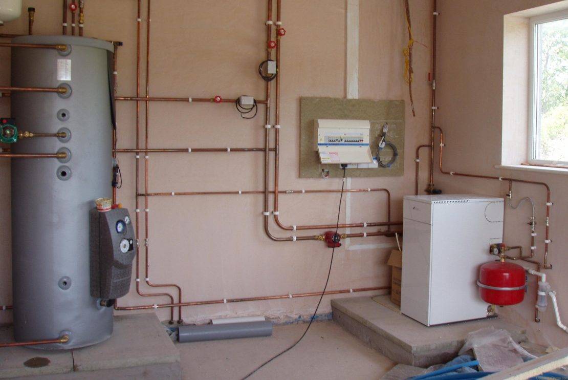 Работы по монтажу отопления Тихельмана начинаются с установки котла, размещать который полагается в помещении не ниже 250 см. Мощность устройства зависит от обогреваемой площади: на 10 м2 площади потребуется 1000 Вт.