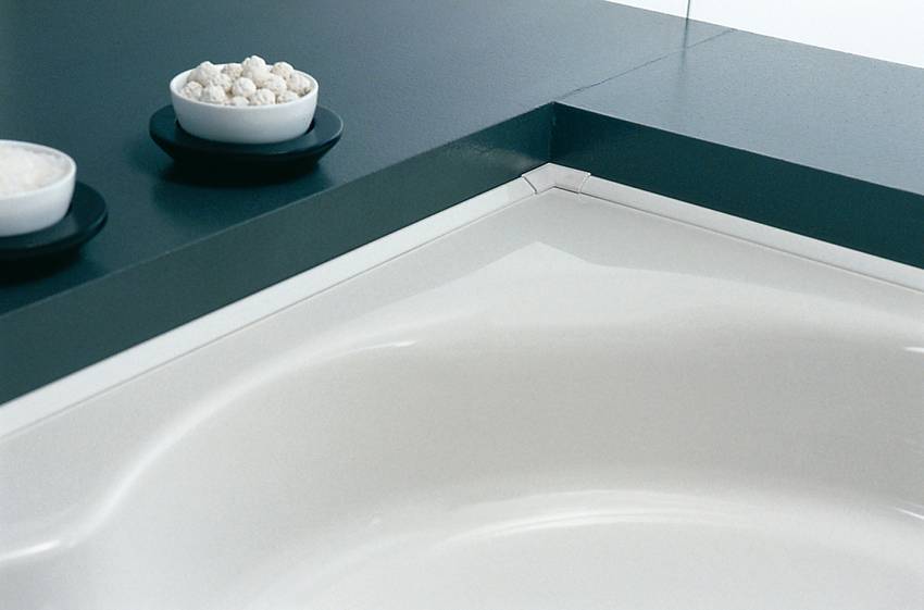 Такой вид изделия больше всего подходит для акриловой чаши: помимо единства материала и цельности внешнего вида, можно отметить его стойкость к деформации, устойчивость к различным химическим составам и биологическим поражениям. К тому же, установку такого изделия довольно просто осуществить своими руками. Далее будет рассмотрено, как установить профиль на ванную.