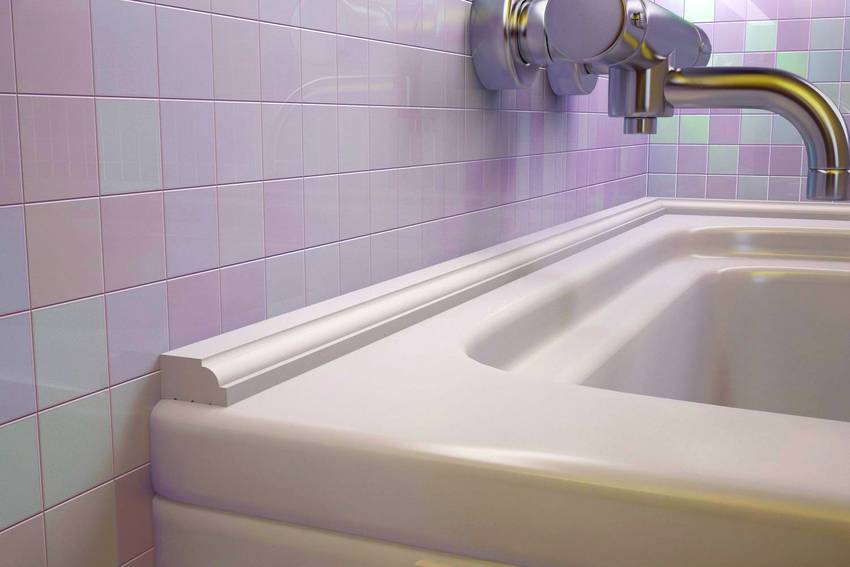 Пластиковый плинтус на ванну — функциональное и практичное решение для маскировки зазора между ванной и стеной. К тому же, существует множество разновидностей пластиковых изделий, имеющий различный дизайн и расцветку. ПВХ плинтус для ванной не боится влаги и способен герметично замаскировать стык, препятствуя проникновению воды.