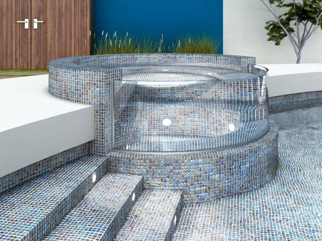 Стеклянную мозаику выпускают специально для ванн, так как все должно быть бассейновым, все попытки замены на более дешевые варианты обречены на неудачу и неизменно приводят к переделке, что сказывается на стоимости работ.
