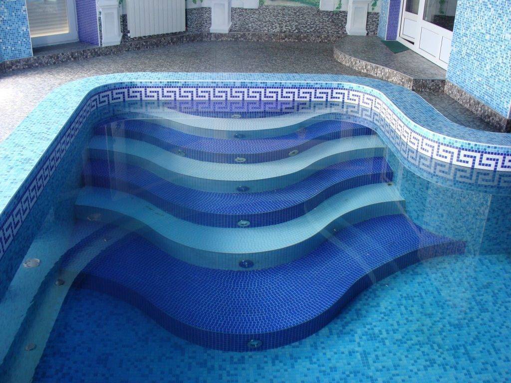 Облицовка чаши бассейна мозаикой (стеклянная мозаика для отделки)