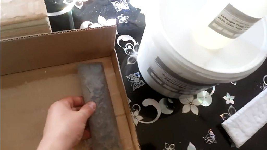 Заливку оставляют просушиться на 2–3 дня, после чего удаляют картон и осторожно отделяют шаблонную плитку от силикона. Силиконовая форма готова к работе
