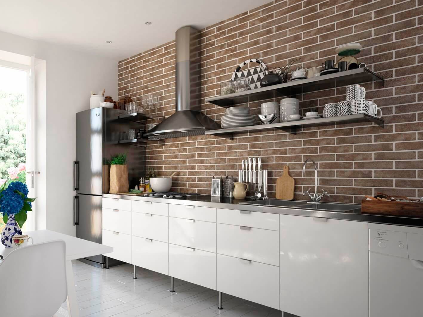 Плитка кирпичиками для кухни может быть изготовлена из различных материалов, которые определяют ее стоимость, сферу применения, эстетические качества и т.д.: