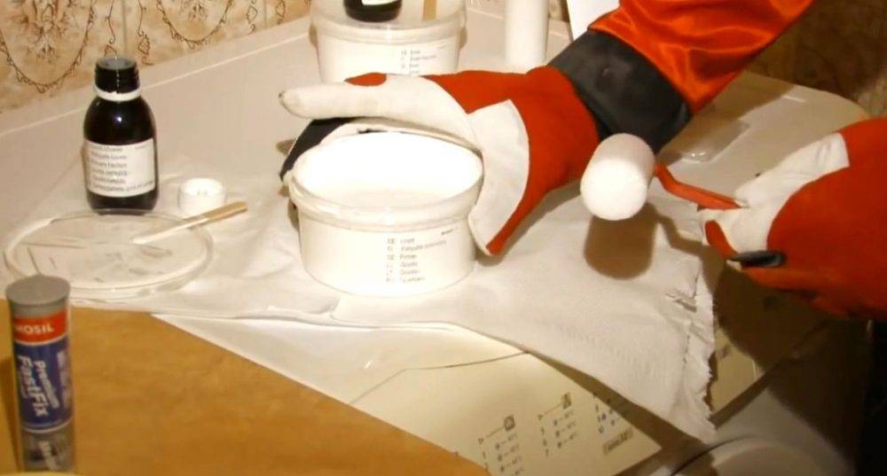 Хорошо очистив ванную нужно дать ей высохнуть или подсушить с помощью строительного фена, далее, обезжирить растворителем (к примеру ацетоном или уайт-спиритом). Намочив ветошь (тряпку) или немного пролив растворителем ванну, хорошо протереть ветошью всю ванну. Используйте при работе респиратор!