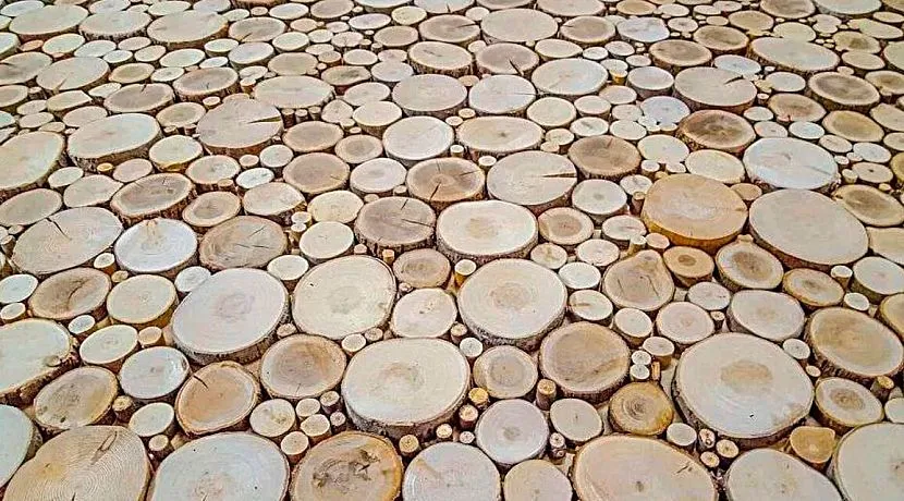 Крайне необычно смотрится пол, который выстилается срезами древесного ствола, а сверху заливается полимерным составомИсточник zen.yandex.ru