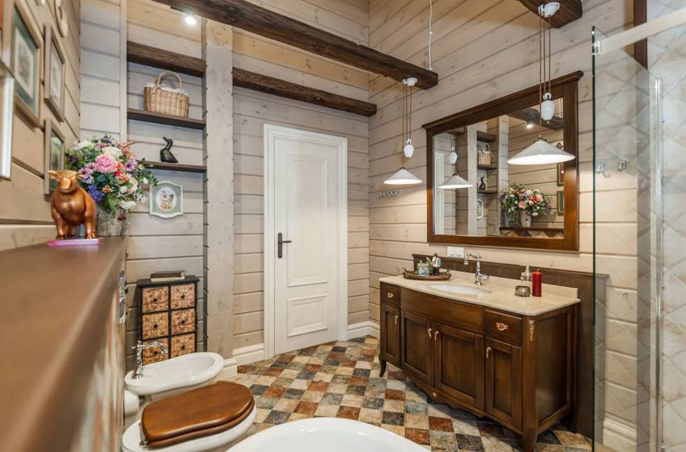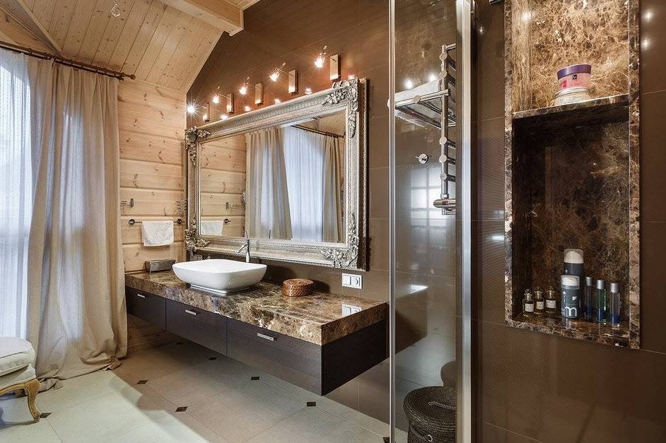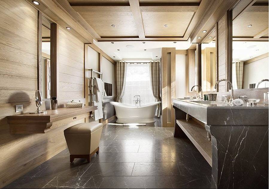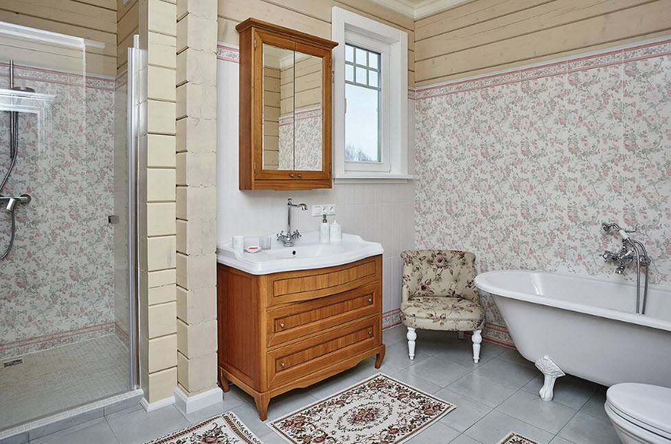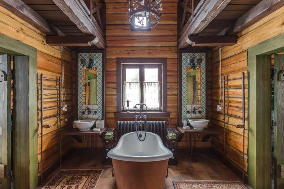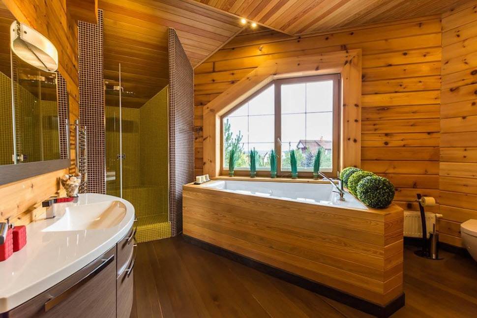 - дерево отлично сочетается с другими типами материалов в ванной;