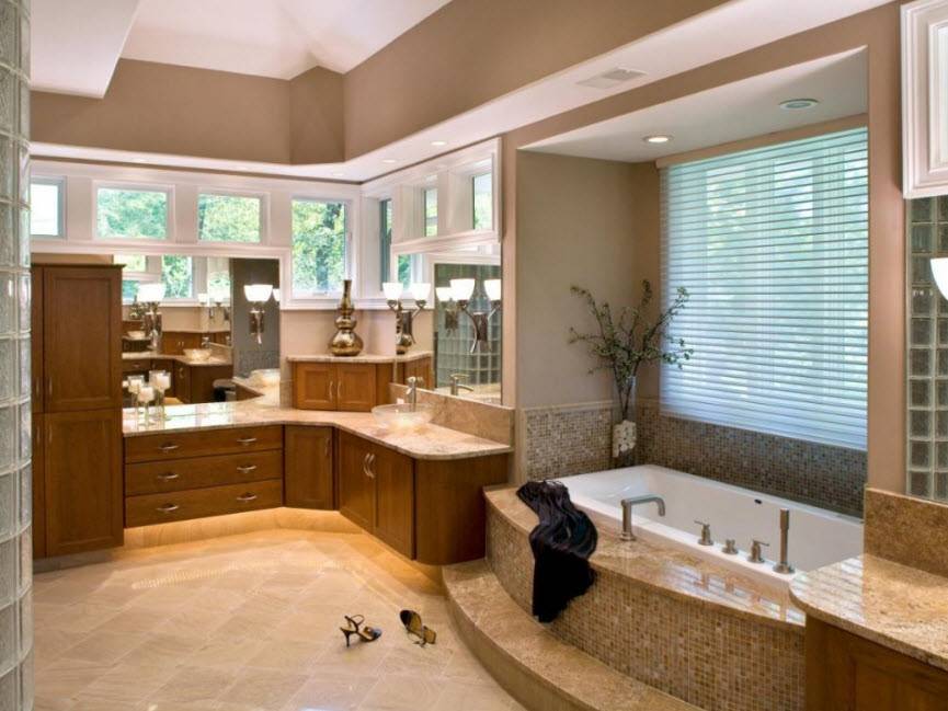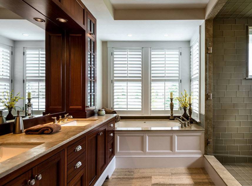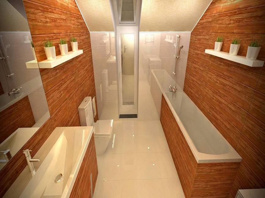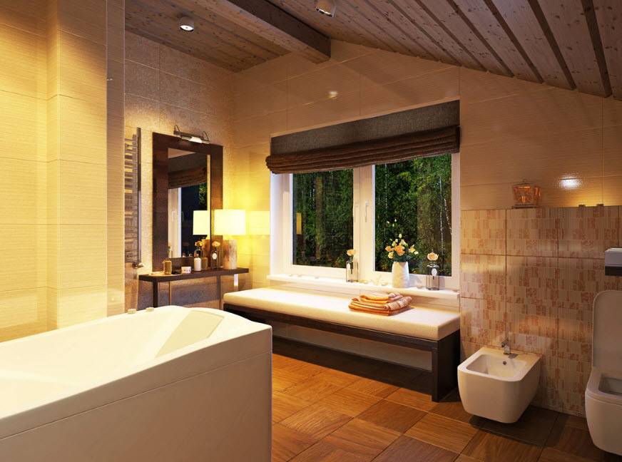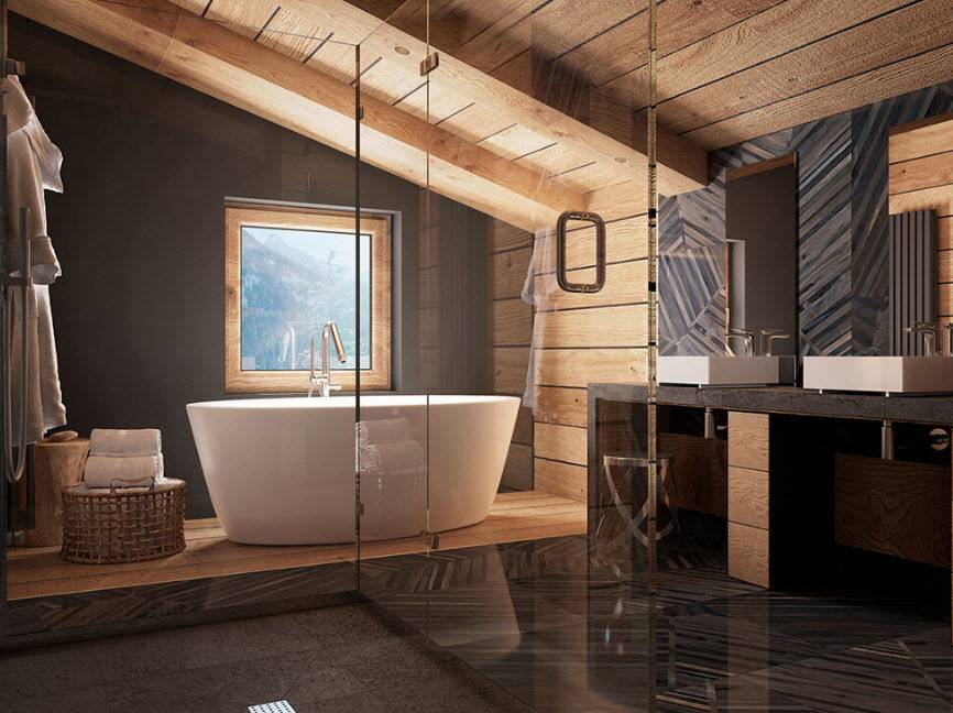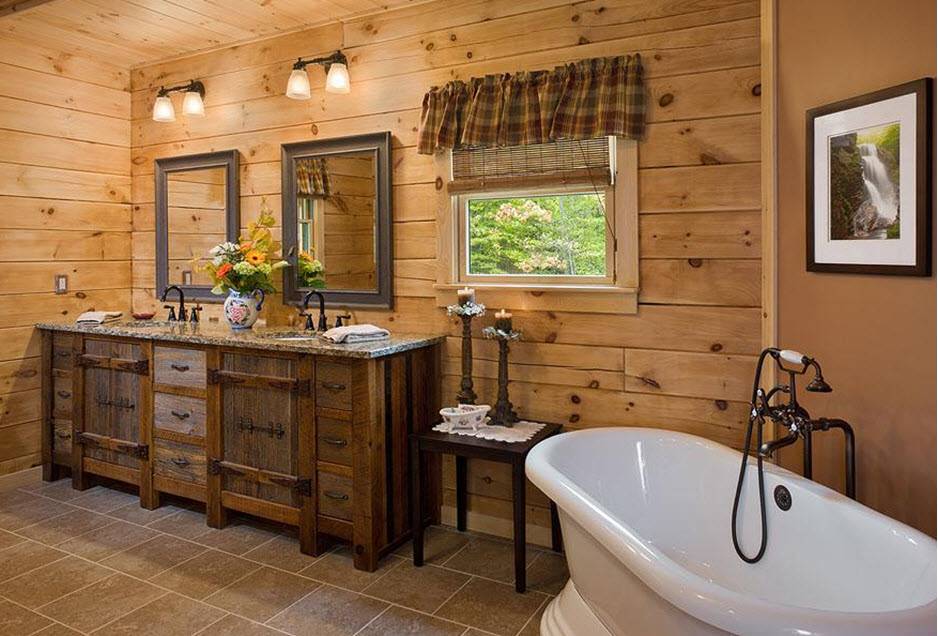 - дерево отлично сочетается с другими типами материалов в ванной;