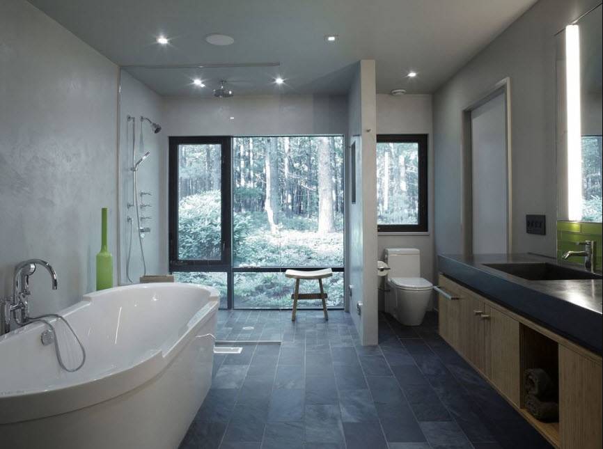Вариантов для обустройства напольного покрытия в ванной комнате множество. Главным условием для отделки является соблюдение основных критериев: стойкость к влаге и горячему пару, максимально сниженный уровень деформации поверхности. При этом не стоит забывать об эстетике помещения. Пол в ванной комнате должен выглядеть красиво и гармонично сочетаться с остальными видами отделки.