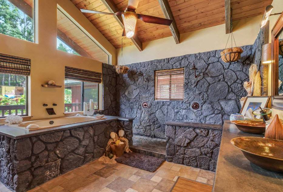 Уложенный в виде мозаики плитняк необходимо тщательно промазывать эластичной затиркой, а сверху покрывать полимерным составомИсточник fixvanna.ru