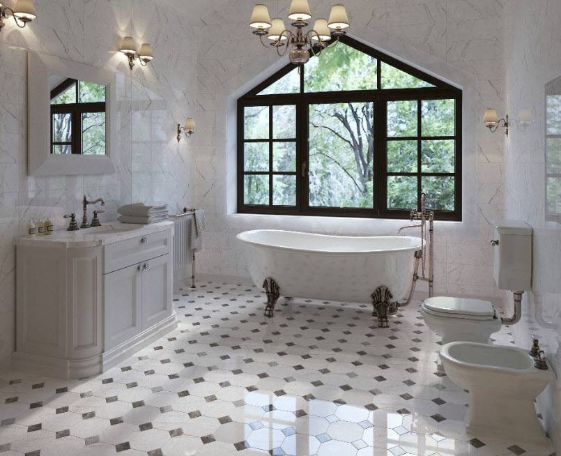 Керамическая плитка является распространённым материалом и весьма близким к идеальному выбору. Подавляющее большинство предпочитает отделывать полы в ванной комнате именно плиткой.