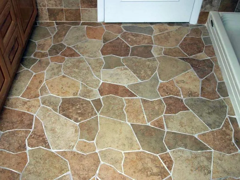 Каменный пол также является разновидностью креативных покрытий. Речь идет не о монолитной установке в виде мраморных плит, а о плитняке.