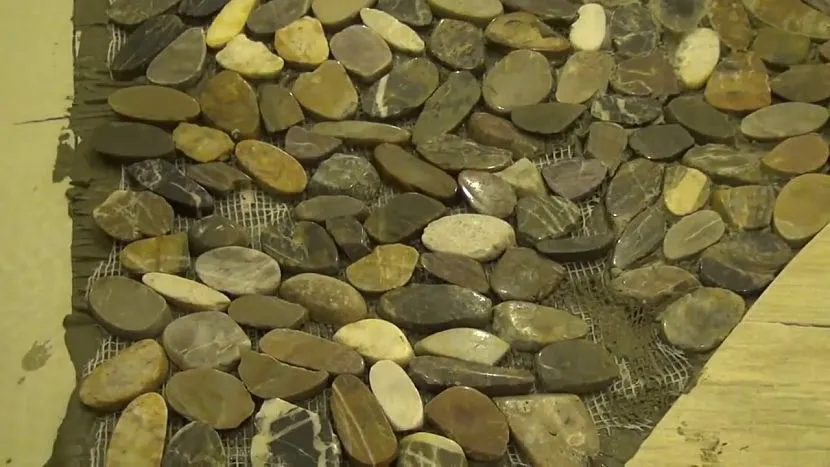 Монтаж пола из натуральной гальки требует много терпения и внимания к деталям, но результат получается превосходнымИсточник santekhnik-moskva.blogspot.com