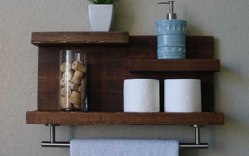 Наиболее практичными для комнат с повышенной влажностью являются следующие три варианта настенных полочек.