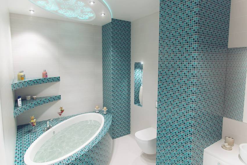 Иногда полка для ванной становится настоящим украшением интерьера. Очень нарядно и живописно смотрятся ниши, отделанные мозаикой. Если ванная выдержана в стиле хай-тек, идеально подойдут полки со встроенной подсветкой.