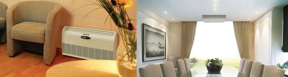 Одной из самых универсальных сплит систем на сегодняшний день является кондиционер напольно-потолочного типа, поскольку его конструкция допускает два варианта установки. Если внутренний блок монтируется под потолком, то воздушные массы направляются вдоль потолка в режиме охлаждения, или параллельно плоскости стены в режиме обогрева. При монтаже на полу потоки воздуха направлены в противоположную сторону.