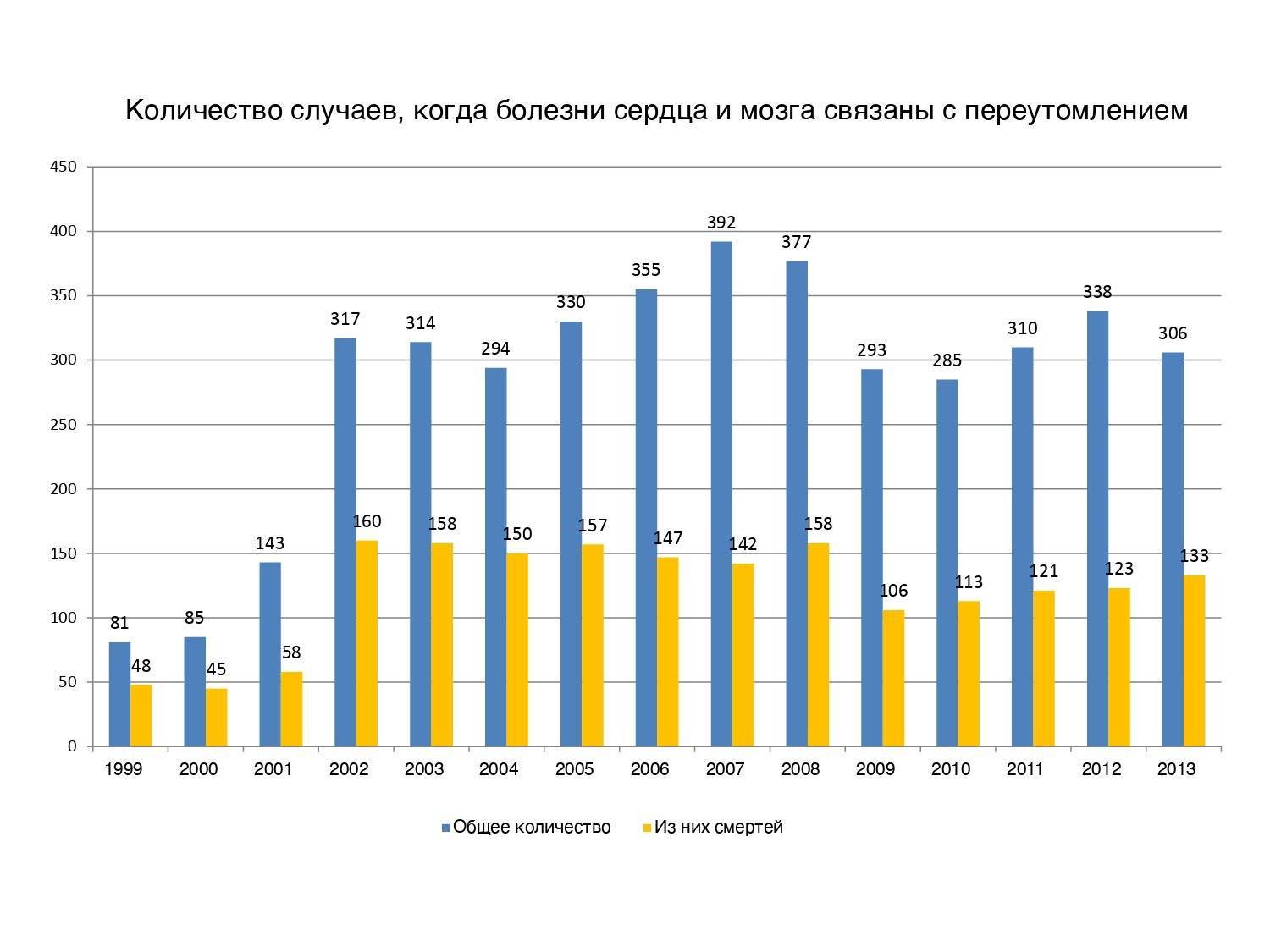 Министерство здравоохранения Японии редко обновляет статистику по кароси и не учитывает случаи, когда переутомление привело к самоубийству. Источник
