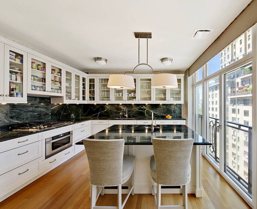Если площадь небольшая, подойдет линейный или угловой мебельный гарнитур, с барной стойкой или откидным столиком. Если же места предостаточно, красиво будет смотреться в центре кухни островная конструкция.