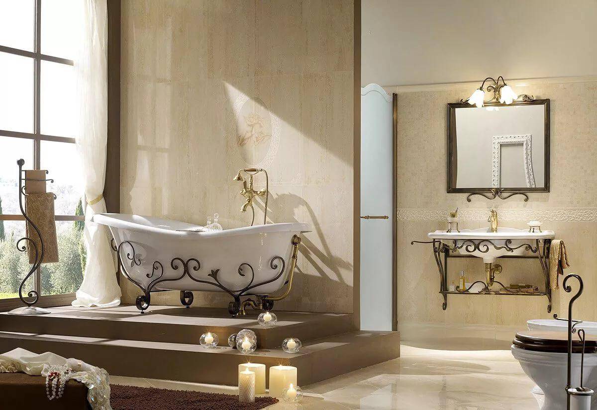 в ванной комнате не уместно чрезмерное количество декоративных элементов, основной упор делается на практичность.