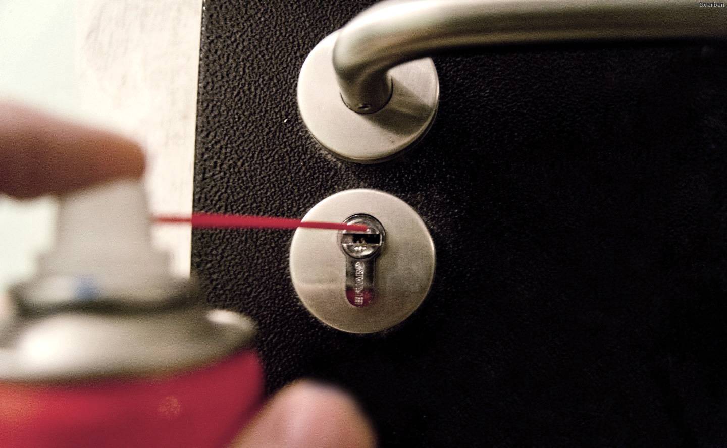 В первую очередь нужно смазать заклинивший замок. Используется для этого универсальный спрей WD-40, который можно найти в ближайшем хозяйственном магазине. В качестве смазки можно использовать также любое машинное масло или керосин.