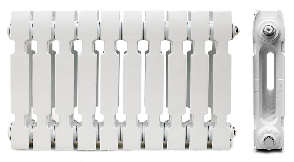 Высокая прочность чугунных радиаторов обусловлена их толстыми металлическими стенками, способными выдерживать давление до 15 атмосфер. Кроме того, большое количество металла обуславливает высокую теплоемкость. Это значит, что даже после отключения источника подогрева теплоносителя батареи будут отдавать тепло довольно продолжительное время. Поэтому, отвечая на вопрос, какие батареи лучше, многие продавцы советуют именно этот вариант, как наиболее практичный.