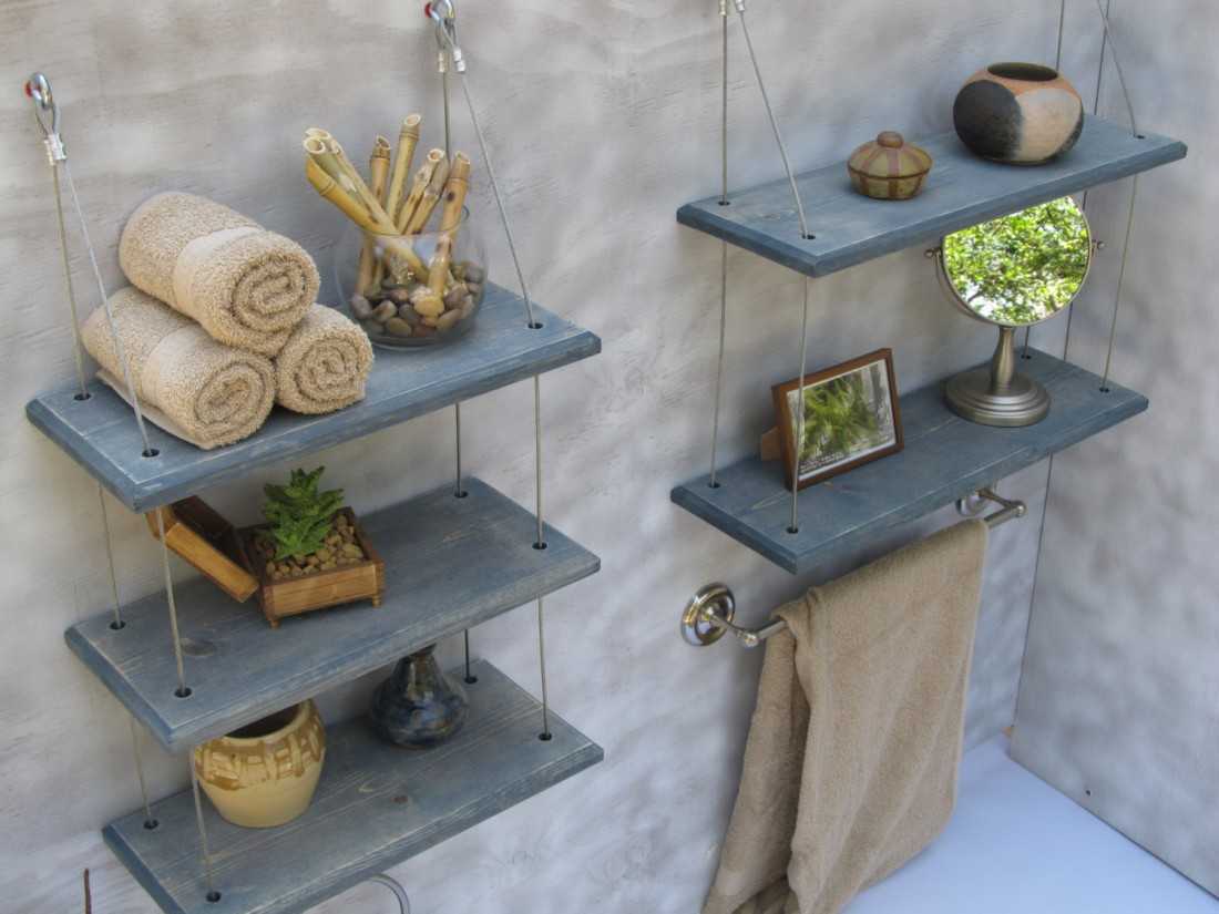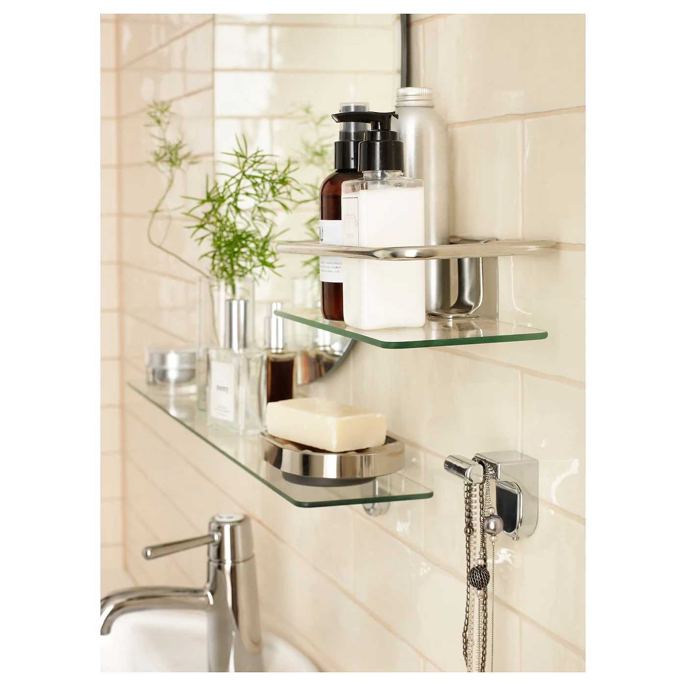 Совет: Если санузел совсем маленький и места для шкафа не нашлось, решением проблемы станут полки из стекла, они вместительны и практически не заметны на стенах.