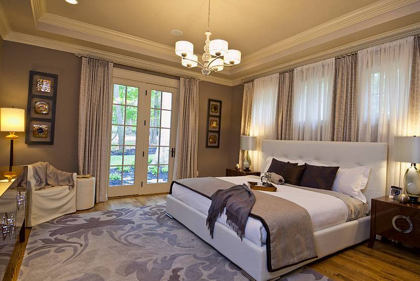 Кровать: в обычной главной спальне, более или менее квадратной, должно быть достаточно места для кровати с размером «queen-size» или «king-size».