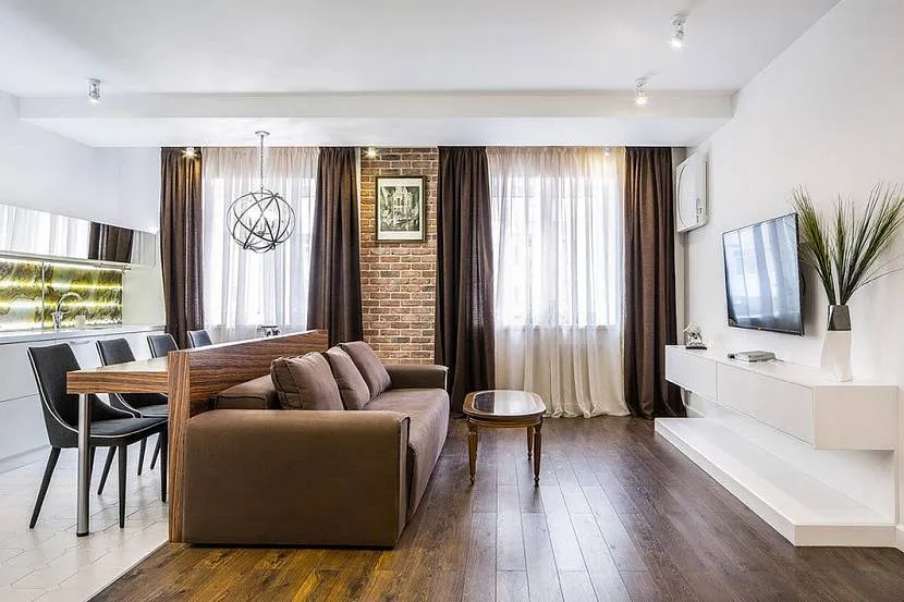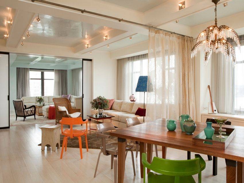 Особенности зонирования кухни и гостиной раздвижной перегородкой