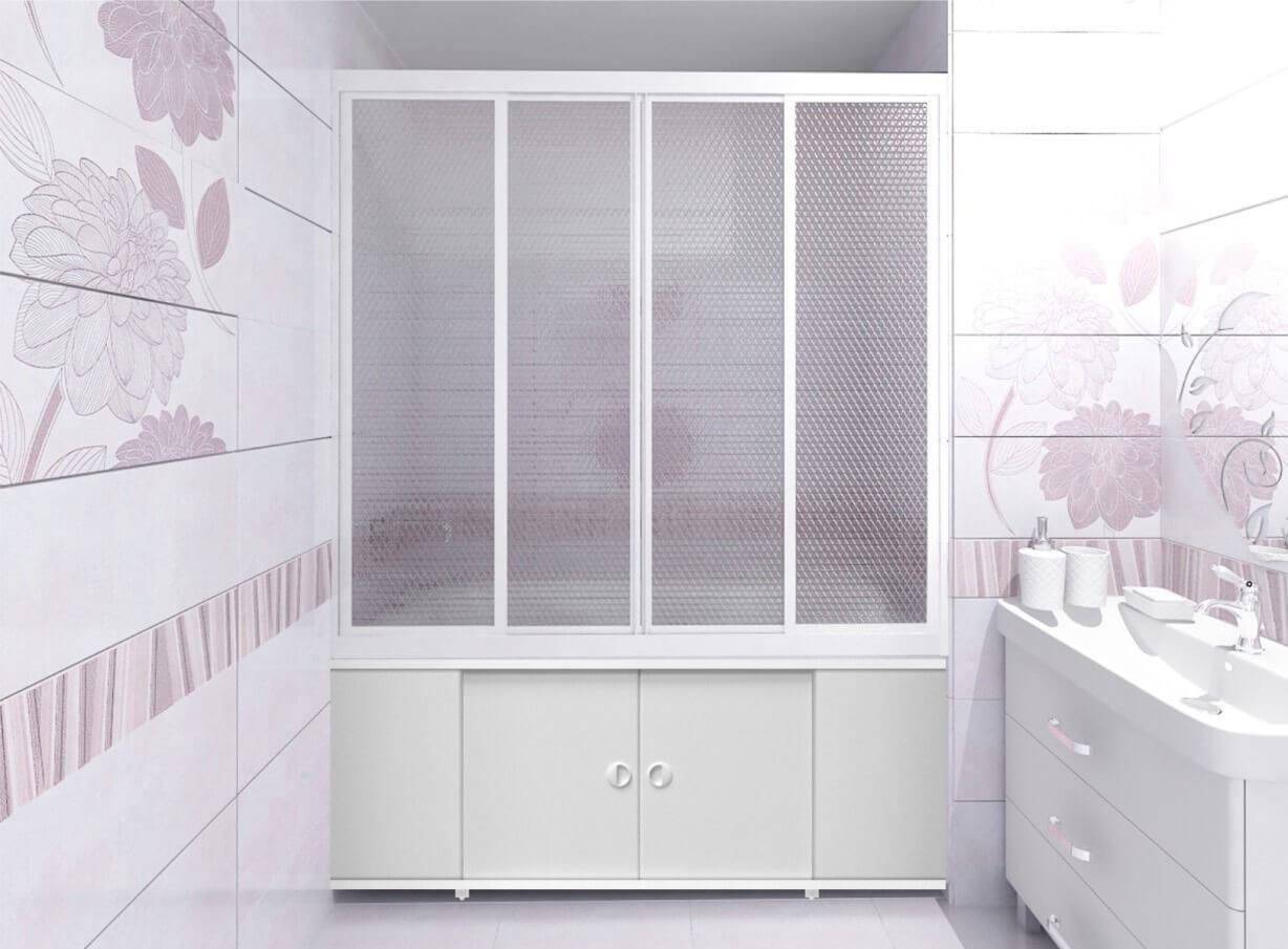 Данная модель представлена в виде своеобразной ширмы, которая способна закрыть всю ванну, половину или ее треть. Очень уместно установить подобный экран в случае, когда возле ванны находится стиральная машинка, шкафчик или другая мебель, техника, которую нужно защитить от брызг воды.