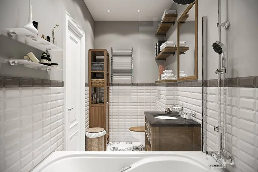 - Ванная комната в чешке отличается идеально ровными стенами, что существенно облегчает процесс облицовки стеновых поверхностей;