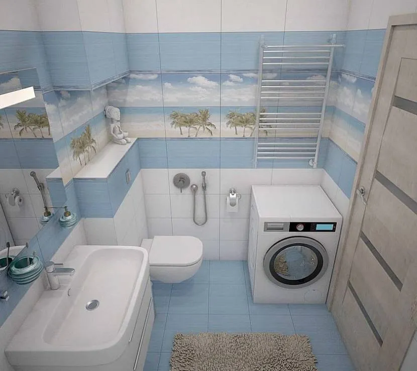 Отделка в ванной комнате обязательно должна быть влагостойкой и гигиеничной. Выбирай материалы, которые не деформируются от воды и температуры. Но избегай слишком объемных и фактурных решений в комнате, площадь которой всего 2 кв.м.