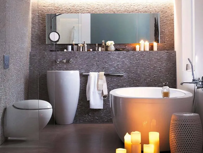 Если вы предпочитаете длинную прямоугольную или овальную ванну, то разместите её вдоль длинной стены. Большую же угловую ванну стоит разместить вдоль меньшей стены.