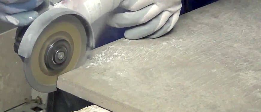 - поскольку при резке керамогранита болгаркой на краях и лицевой стороне плитки могут остаться мелкие сколы и трещины, торец плитки после отрезания зачищают наждачной бумагой или шлифовочным диском.
