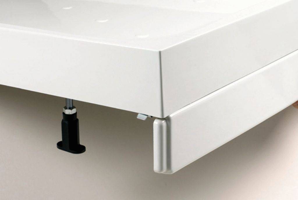 В первом приближении просто, но теперь давайте вспомним, что вся конструкция выставляется по уровню, и затея не покажется детской игрой. Мастер не спрашивает, зачем установка производится строго в горизонт. Потому что знает: чёткое исполнение инструкций гарантирует долгий срок службы изделия. Поясним, что любой перекос со временем приведёт к созданию избыточных напряжений в районе крепления ножек, что будет способствовать их выламыванию. Аналогичная система регулировки часто встречается у низких стальных поддонов.