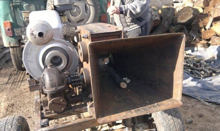 Все три варианта доступны к повторению в домашних условиях и требуют минимум затрат, поскольку при их изготовлении используются детали и узлы от старой автомобильной и сельскохозяйственной техники, отрезки уголков, труб и т. д. Что же касается покупных элементов, то без них обойтись не получится. Если в запасе нет электродвигателя, дисковых пил или фрез, а также других деталей, то их придётся купить.