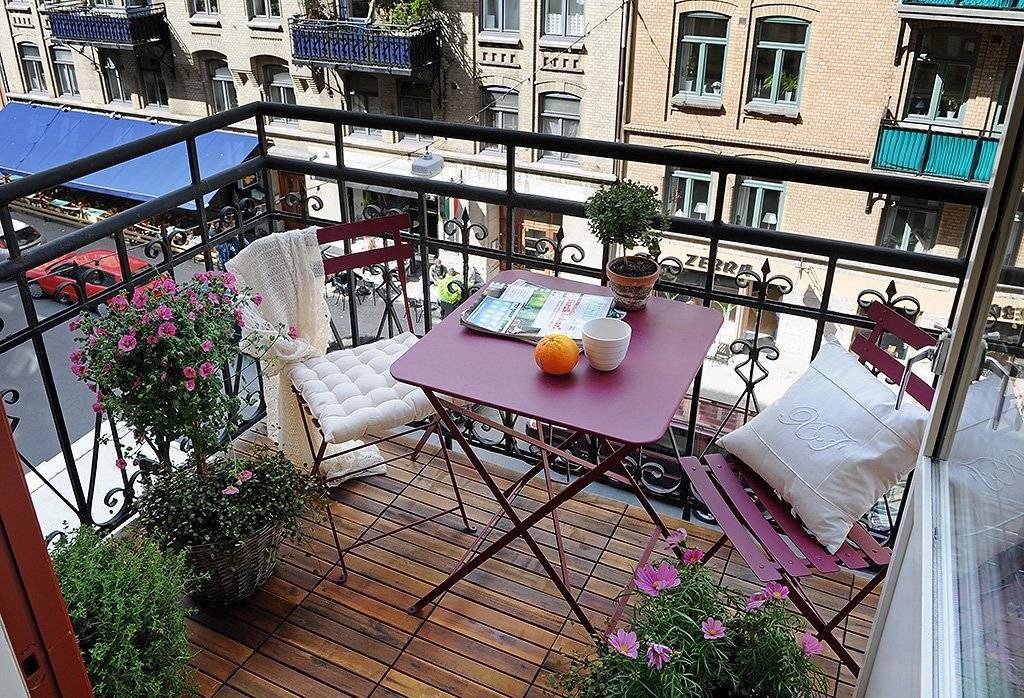 Дизайн балкона открытого типа позволит сделать из небольшого «холодного» помещения отдельную летнюю веранду, о которой жителям тесных квартирок остается только мечтать. Стоит учесть, что такое помещение используется только в теплое время года. Это один из минусов подобной конструкции. Мебель применяют легкую, многофункциональную. При ее выборе делают акцент на быструю сборку, удобное хранение зимой. Не нужно загромождать пространство шкафами и мебелью для хранения вещей. Достаточно небольшого столика и скамейки или пары садовых стульев. Открытый балкон потребует минимум затрат на свою отделку. Достаточно поставить красивые решетки и сделать легкое напольное покрытие. Идеальным этот вариант станет для выращивания летнего сада. Если квартира находится на первых этажах, такие мансарды иногда обвивают виноградными лозами, которые летом дают дополнительную тень и одновременно украшают фасад дома, радуя взгляд прохожих.