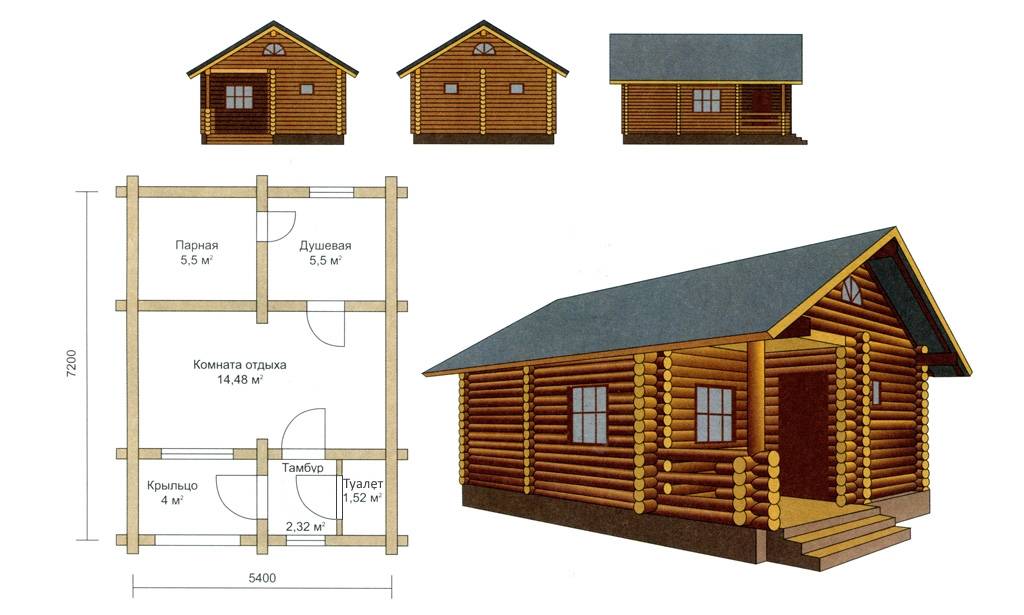 Проект бани с туалетом в тамбуре