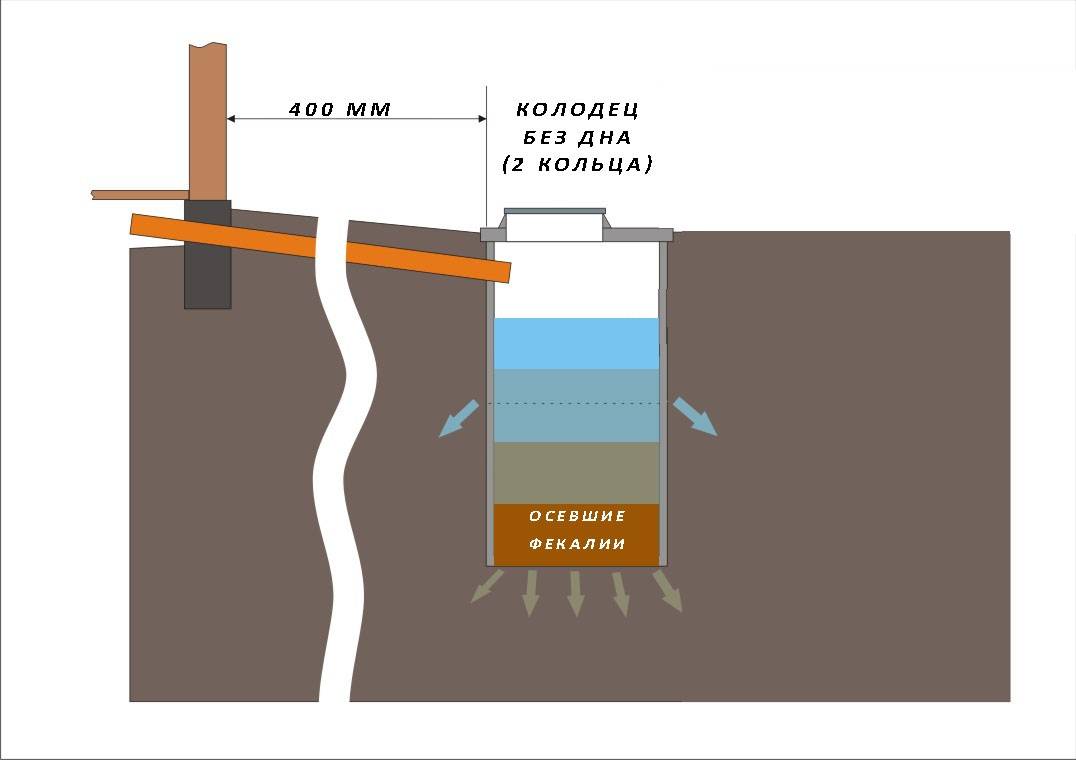 - Отдельный накопительный септик за пределами бани, в который по трубе самотеком направляется сток нечистот. Как правило, он располагается недалеко от банной стены, но изолирован и не издает запахов.