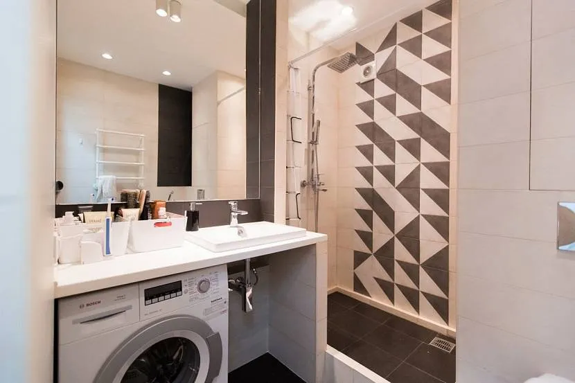 Ванная со стиралкой и душевой кабинойИсточник roomester.ru
