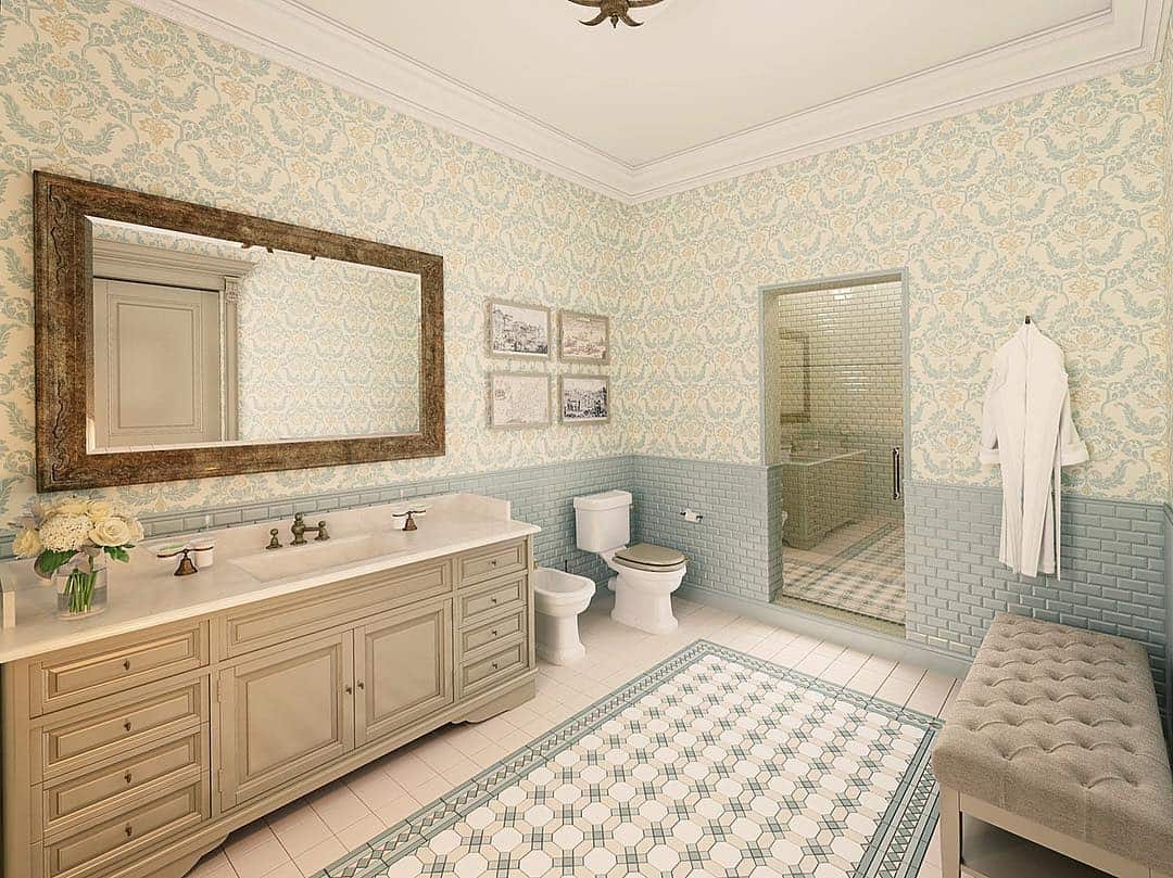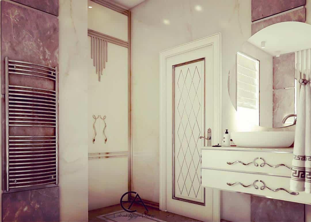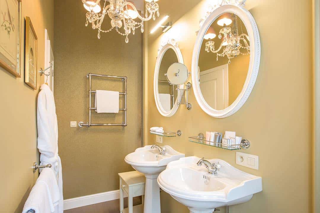 Само название говорит о том, что здесь вы не найдете пластиковых панелей и светодиодных лент. Классицизм – это нечто величественное и незыблемое. Мебель из дорогих пород дерева, на потолке хрустальные люстры, а ванная и унитаз из настоящего фарфора с росписью.
