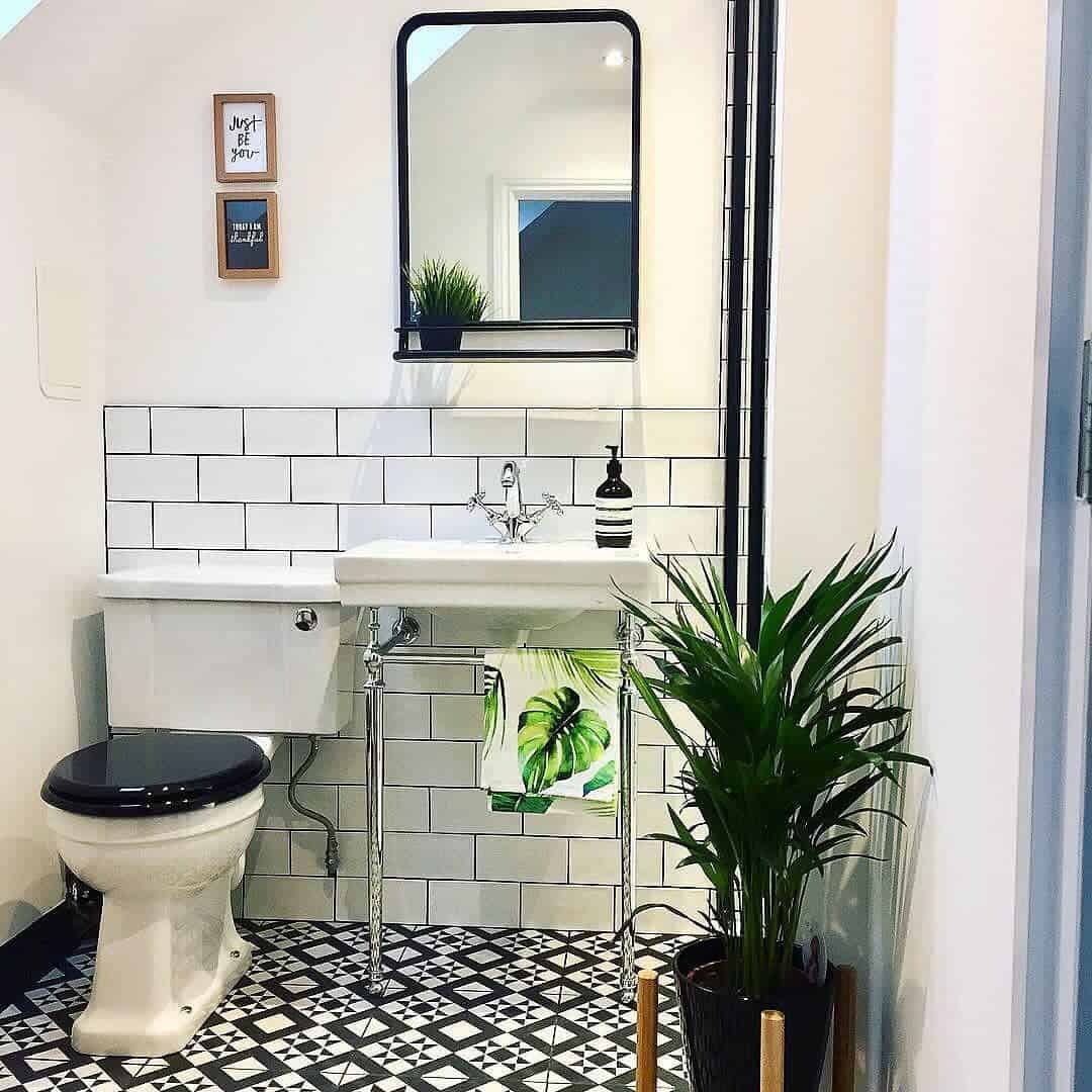 Оформление ванной белым кафелем является классическим вариантом и неоригинальным. Белый фон помогает визуально расширить пространство, поэтому добавление более темных акцентов помогает уйти от однотонной атмосферы. Темный пол или вставки других цветов добавят оригинальности и гармонии интерьеру.