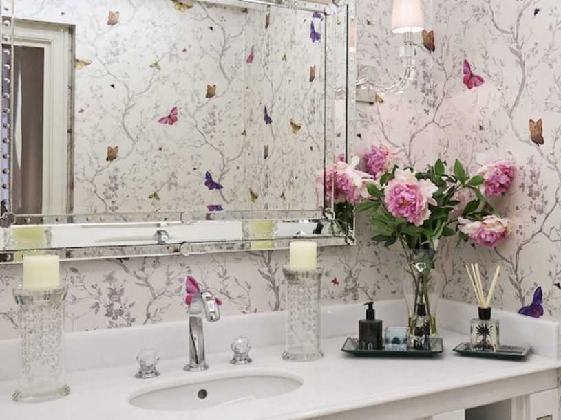 Для большей оригинальности и романтического настроя можно выбрать зеркала нестандартных форм. Если элементы будут оснащены дополнительной подсветкой, непосредственно в ванной можно будет наносить макияж. На фоне ярких, колоритных отделочных материалов успешно будет смотреться подсвеченная рама. Модным веянием считаются зеркальные дверцы шкафчиков, декоративные предметы из зеркальных элементов, облицовка зеркальной плиткой.