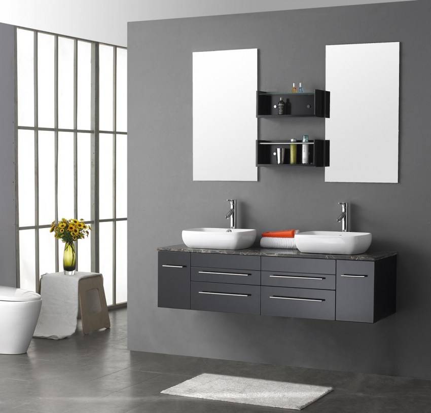 Навесные шкафчики, полочки и зеркала – отличное решение как для большой, так и для маленькой ванной комнаты, поскольку они визуально увеличивают пространство, не создают ощущения тяжести. Особенно это касается маленьких ванных комнат, поскольку в таких обычно нужно добавить воздуха, пространства.